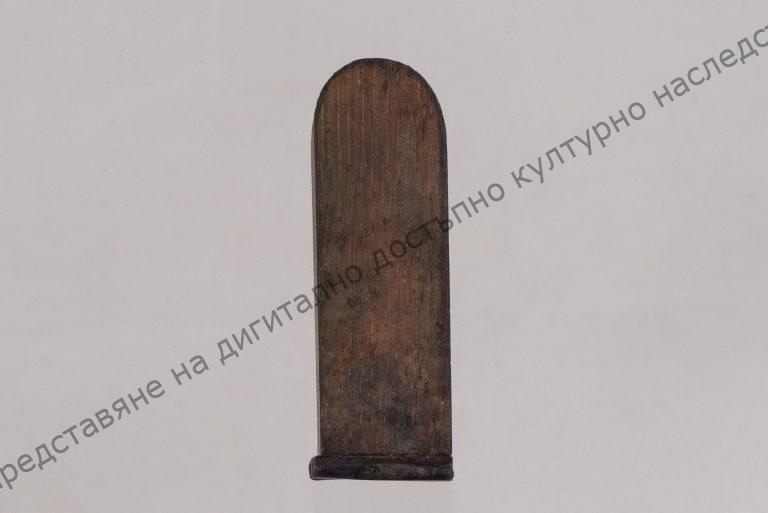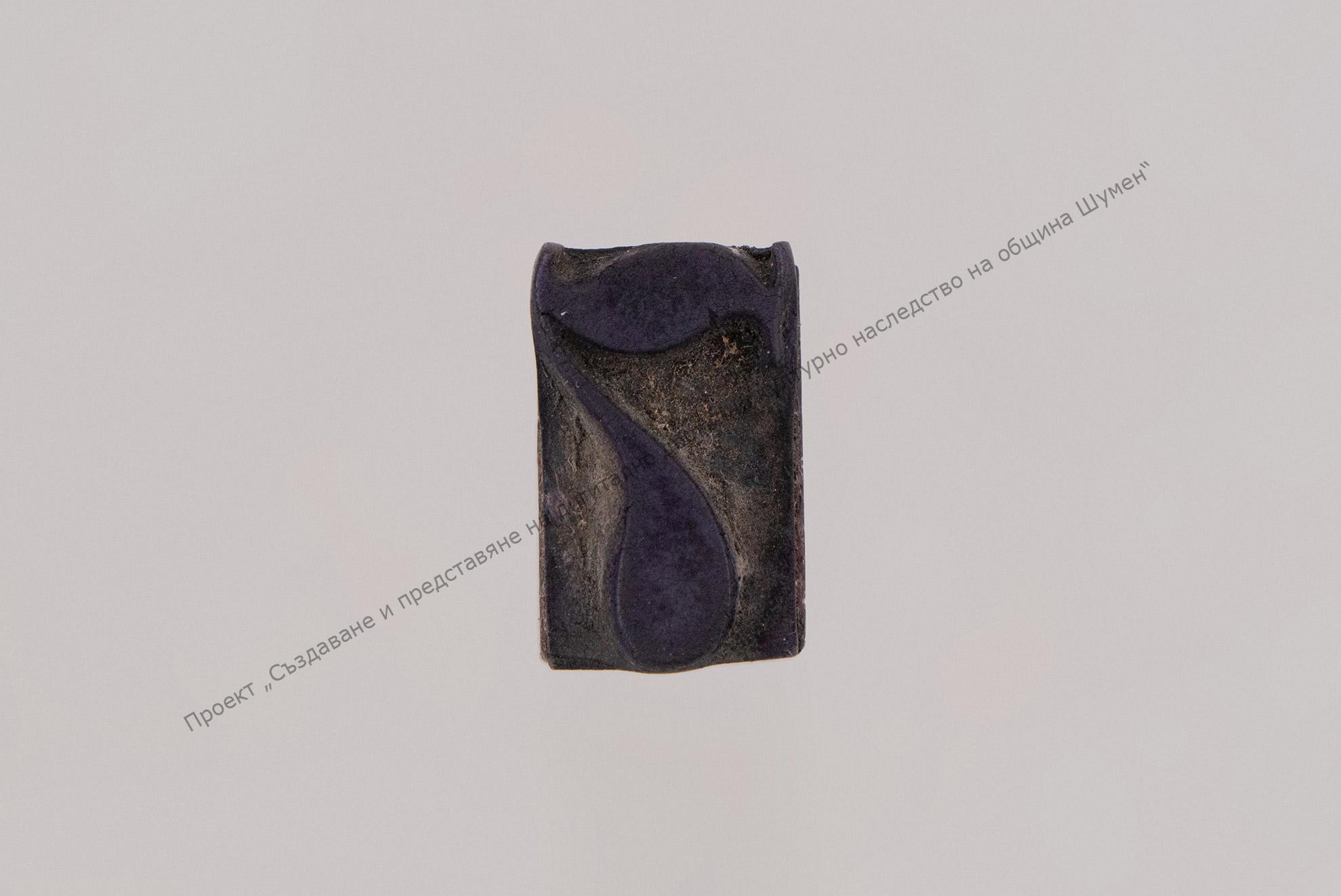 Дървена призма, горната тясна основа заобления за хватка, на долната основа – негативно изрязана цифрата ,,7“