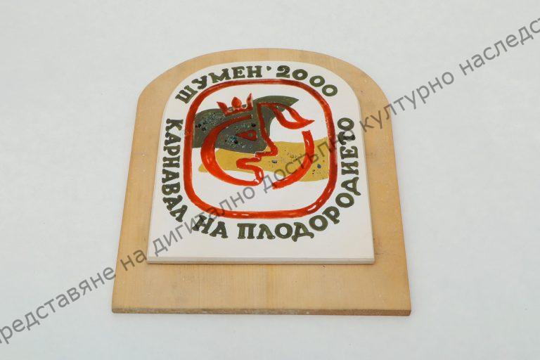 Ceramic plate, wooden footing, awarded to the winners in the “Fertility Carnival”, Shumen, 2000
