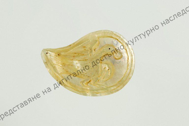 За пафта, седефена, с форма на индийска палмета. Изпъкнало изображение на птица