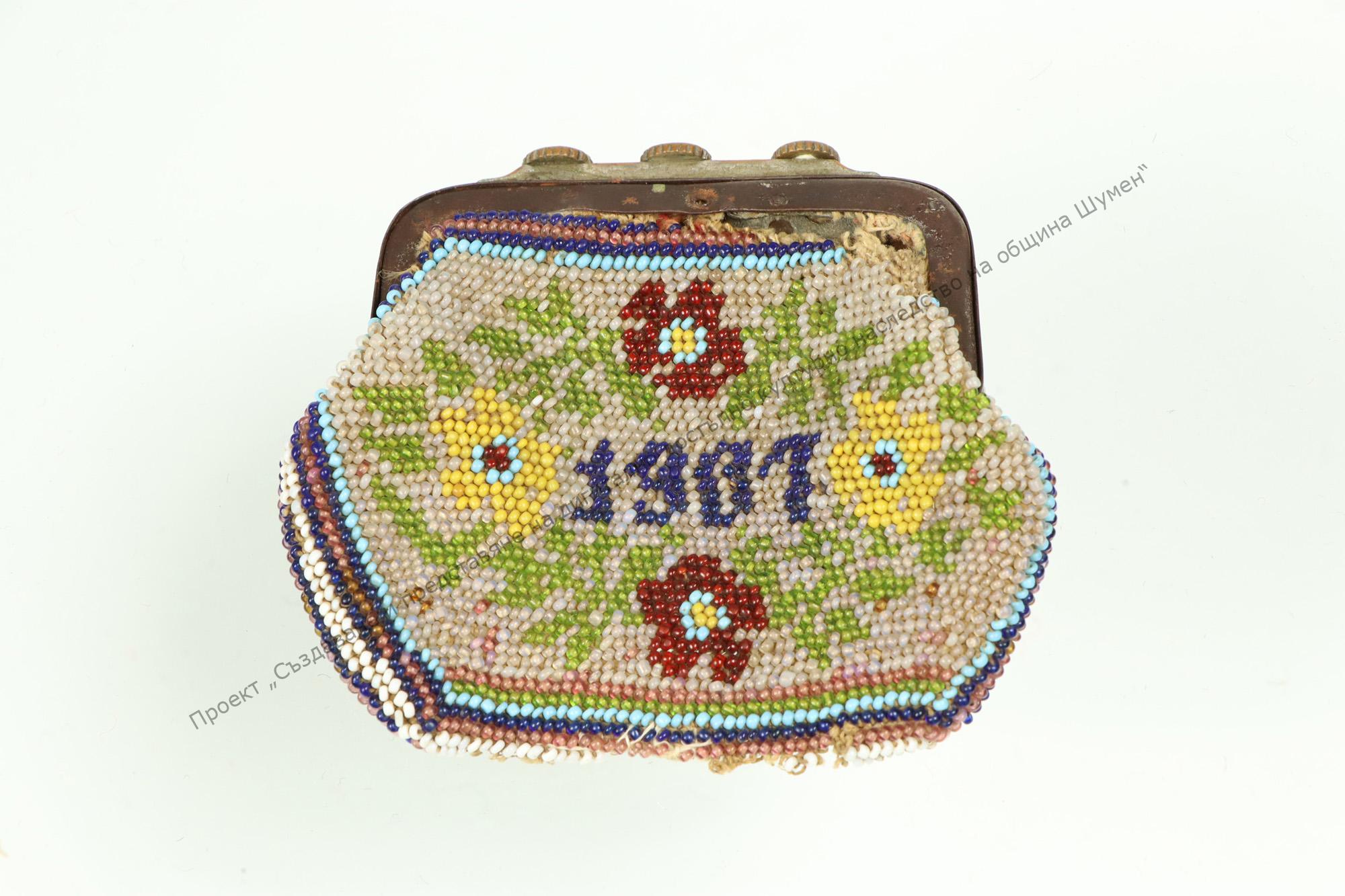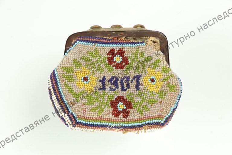 Made of coloured beads forming flowers. animals and the year 1907. Worked by Hristo Mihaylov from Shumen