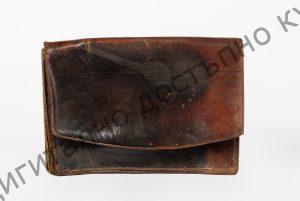 Портмоне от кожа, кафяв цвят с три прегради и правоъгълна форма, изработен втората половина на XIXв., 18 см дължина и 12 височина.