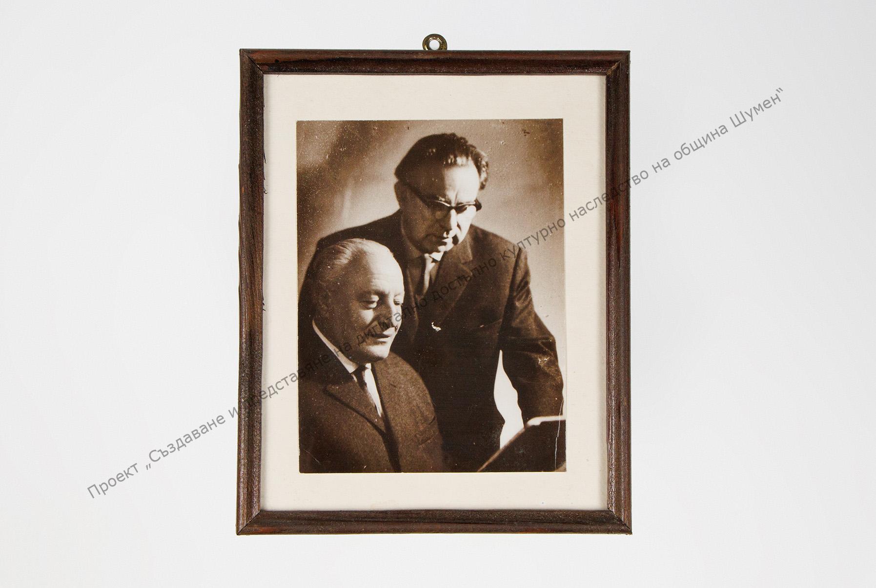 Парашкев Хаджиев и Панчо Владигеров; в дървена рамка. Фонд „Панчо Владигеров“