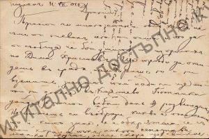 Пощенска картичка до В. Коларов 1901 г. Княжево, школата за запасни офицери, от брат му Божан, Шумен 12. VII. 1901 г. Размер 9/13.