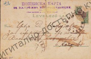 Пощенска картичка до В. Коларов в школата за запасни офицери Княжево от неизвестен, подписал се „твой Д-къ“. Размер 8/13,5.