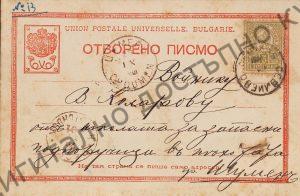Пощенска картичка до В. Коларов в школата за запасни подпоручици в пехотата в гр. Шумен от Ал. Димитров 26. IX. 1901 г. Севлиево. Размер 8/13,5.