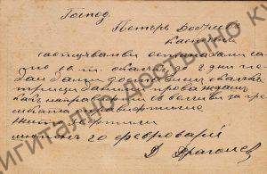 Пощенска картичка до Петър Коларов от Драгоев. Шумен, 20.II.1890 г. Фонд „Васил Коларов“