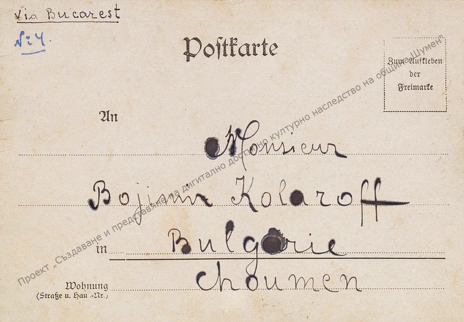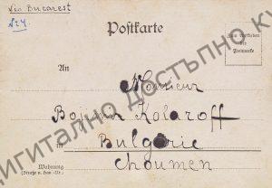 Пощенска картичка от В. Коларов от Букурещ до Божан Коларов. Размер 8/13.