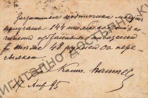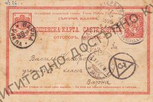 Пощенска картичка до В. Петров Коларов – ученик в VII клас в гр. Варна от Петербург, 1895 г. Съобщава му се, че може да си набави 144 тома избрани произведения на руски писатели за 48 рубли. Фонд „Васил Коларов“