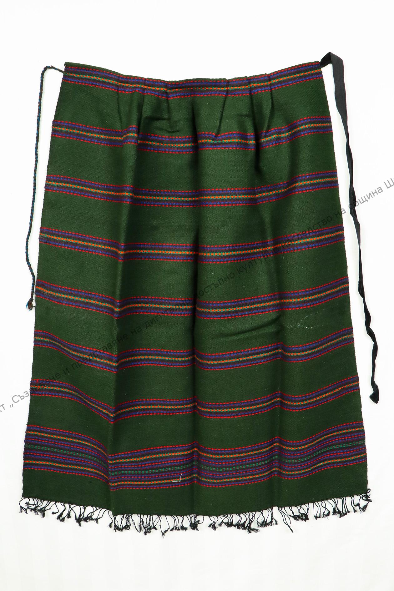 От вълна. Домашно тъкана, мармородно, тип „котленска“. Тъкана на разноцветни ивици, 60-70-те години на XIX век