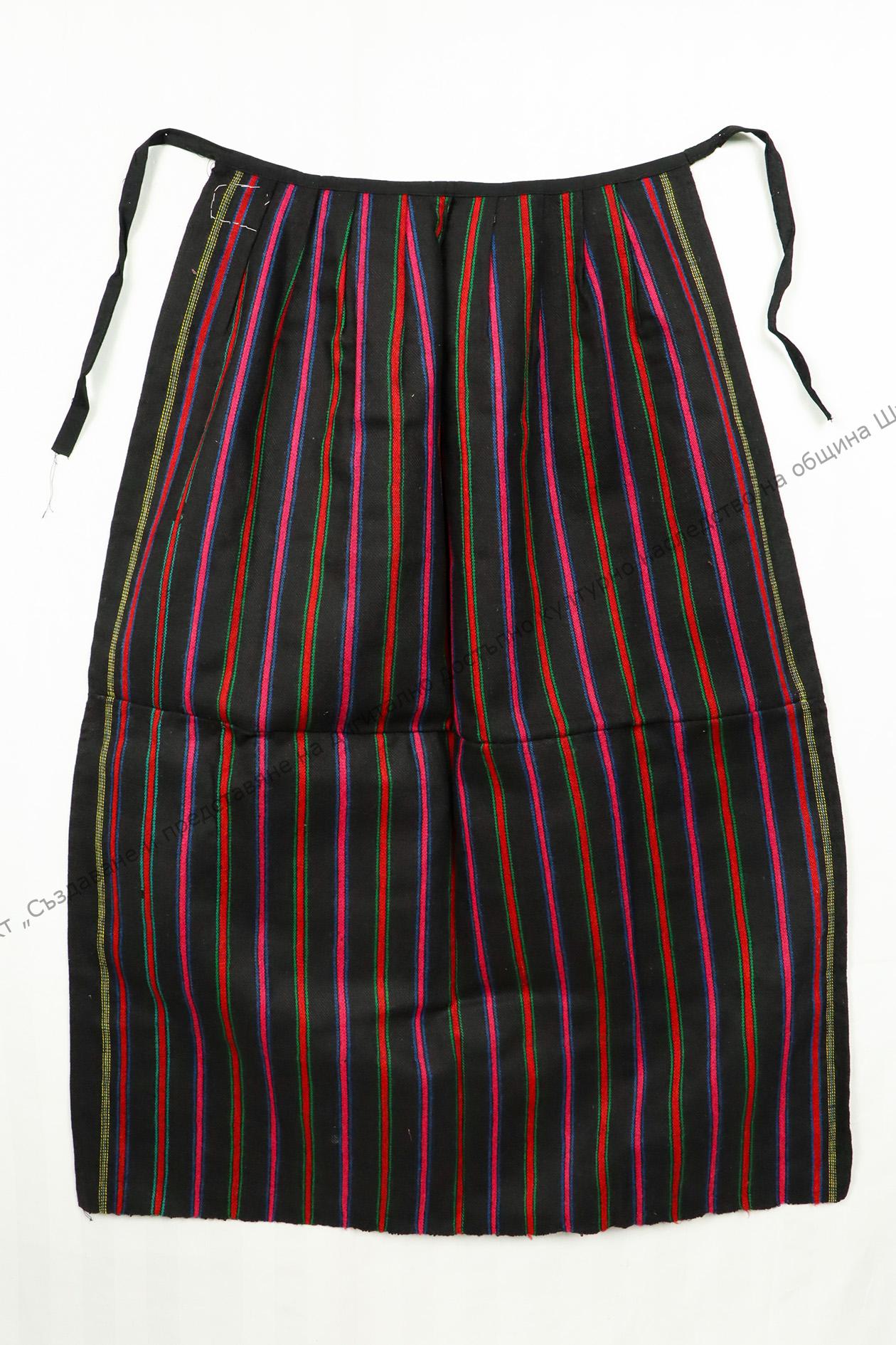 От памук и вълна. Домашно тъкана, диметно. Тъкана на разноцветни ивици, около 30-те години на XX век