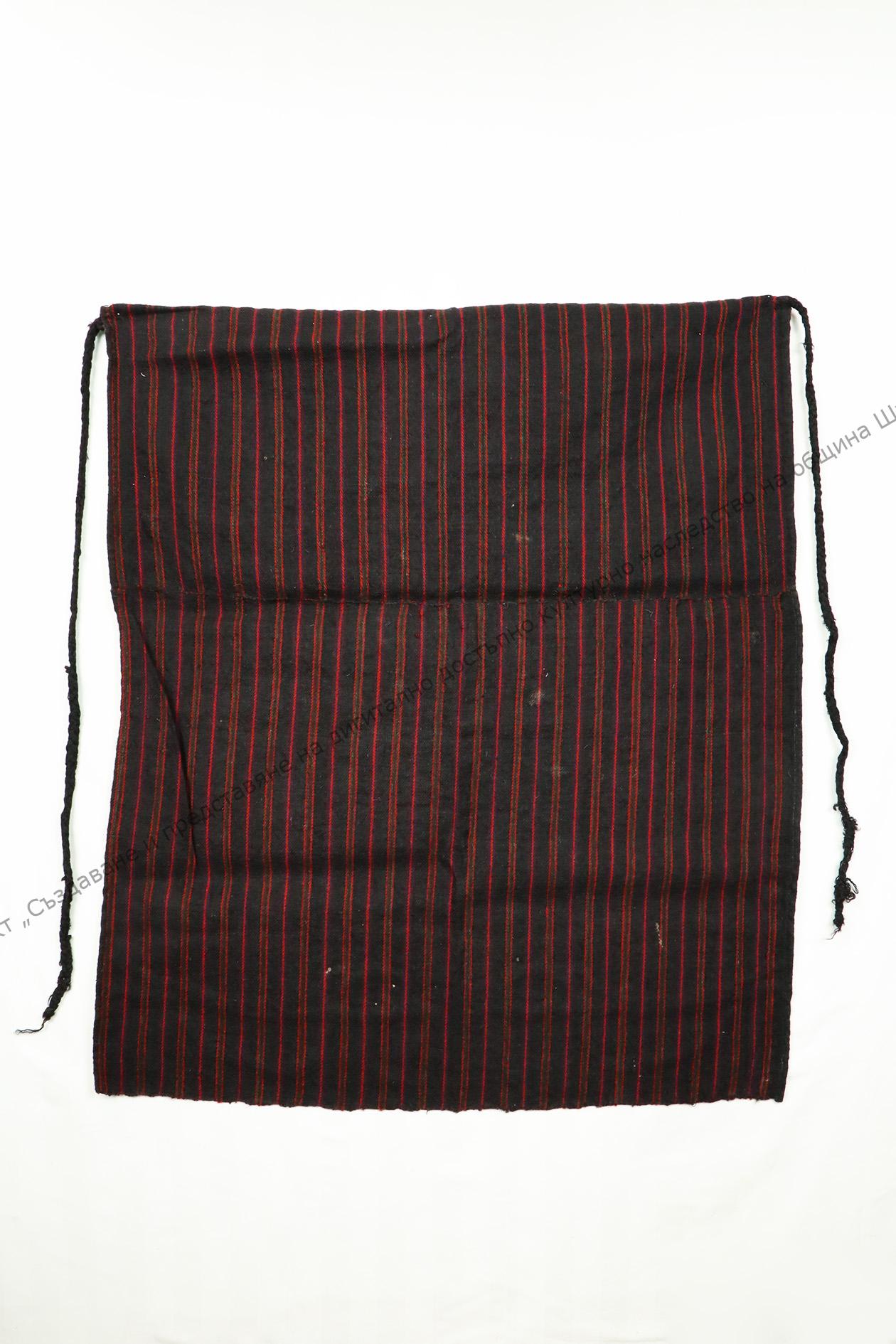От вълна. Домашно тъкана, диметно. Тъкана на разноцветни ивици, около 30-те години на XX век