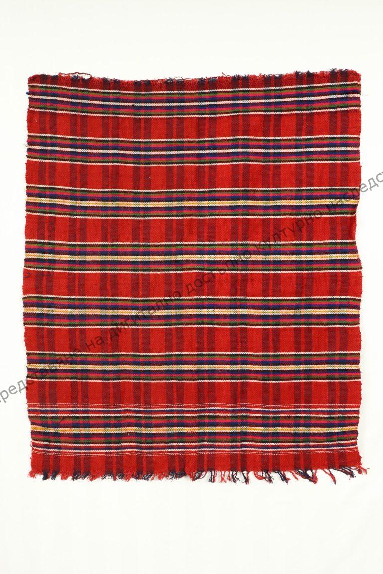 От вълна и памук. Домашно тъкана, мармородно, тип „котленска“. Тъкана на разноцветни ивици, началото на XX век