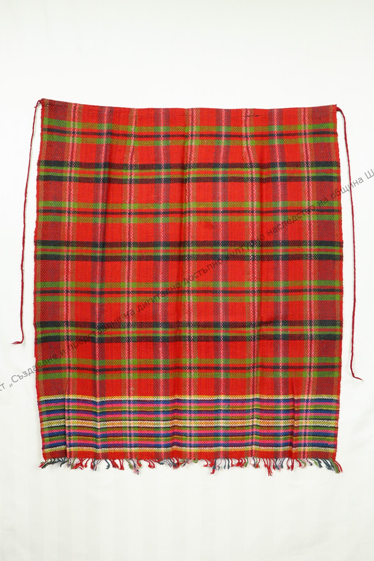 От вълна и памук. Домашно тъкана, мармородно. Тъкана на разноцветни ивици образуващи квадрати, 30-те години на XX век