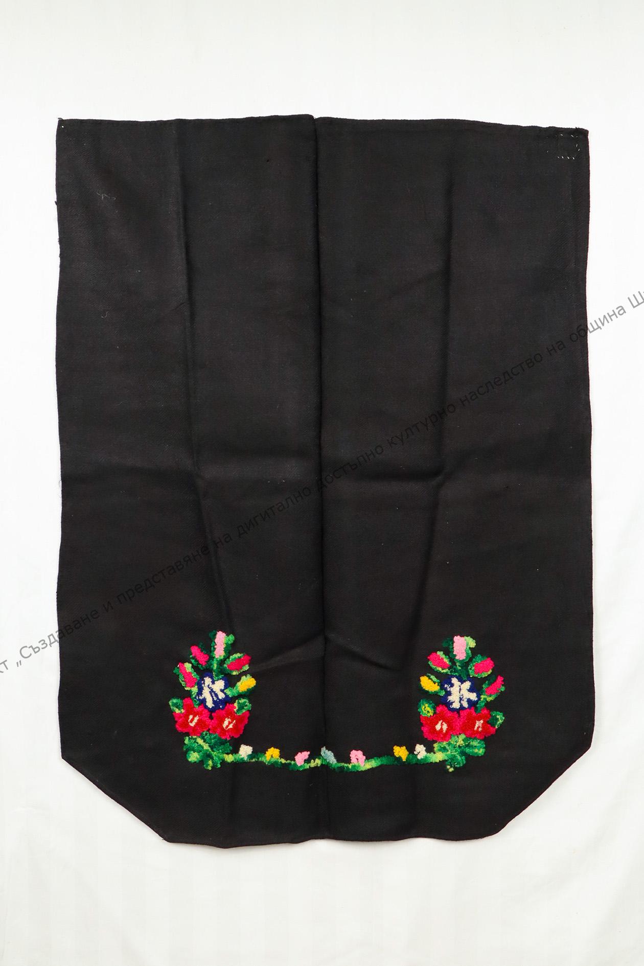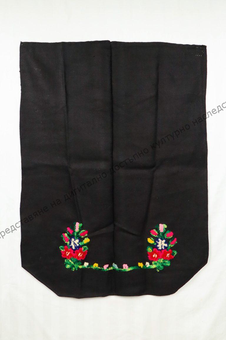 От вълна. Домашно тъкана, диметно. В долния край украса от фъкана бродерия в растителни орнаменти, 30-те години на XX век за чеиз