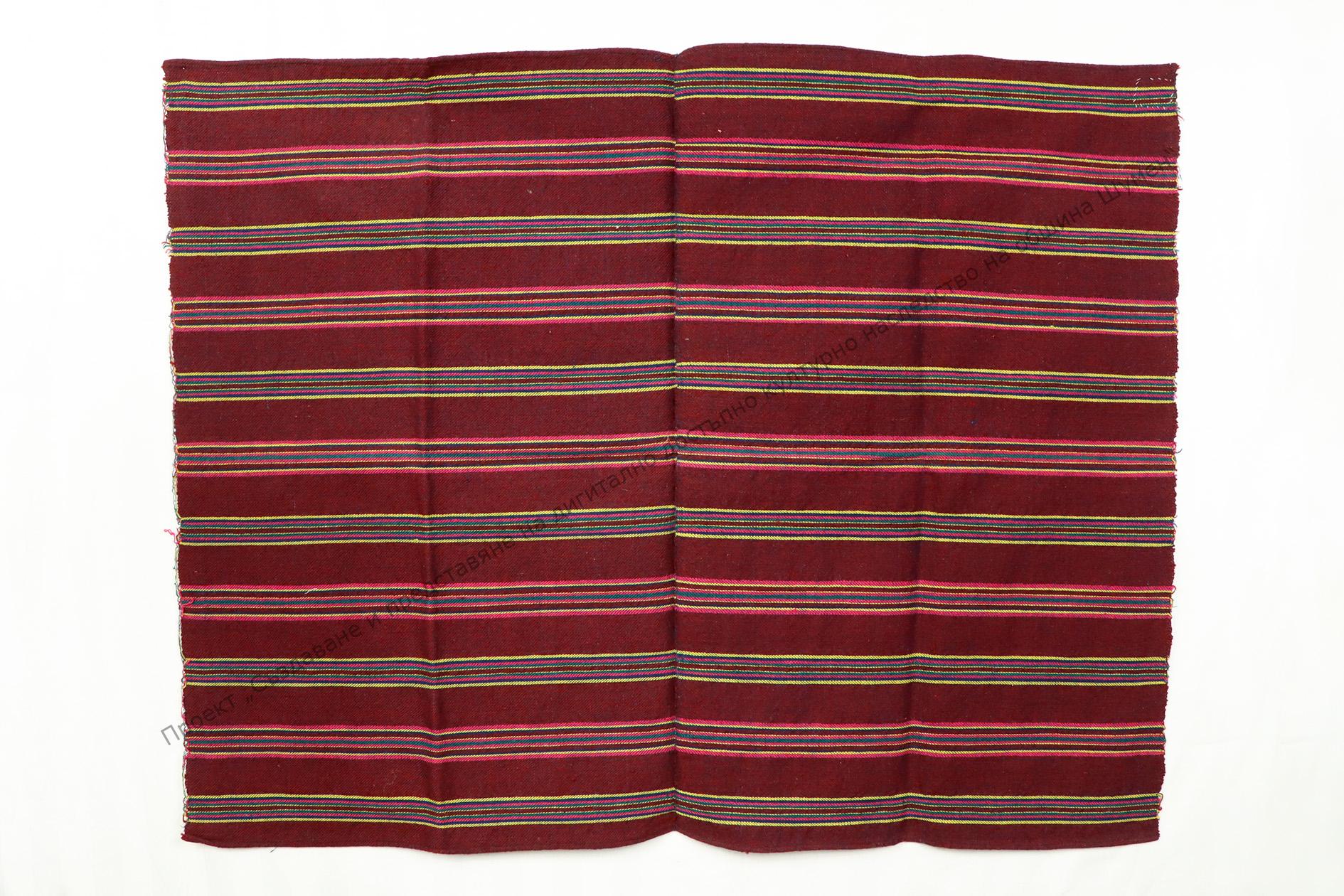 От вълна и памук. Домашно тъкана диметно, тип „котленска“. Тъкана на разноцветни ивици, началото на XX век за чеиз