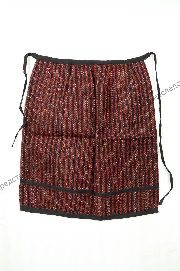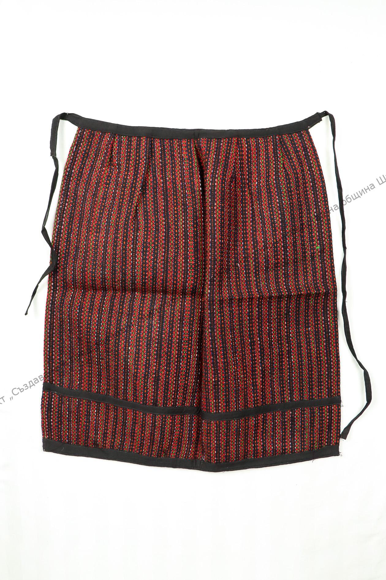 От вълна. Домашно тъкана лито, тип „котленска“. Тъкана на разноцветни ивици за чеиз