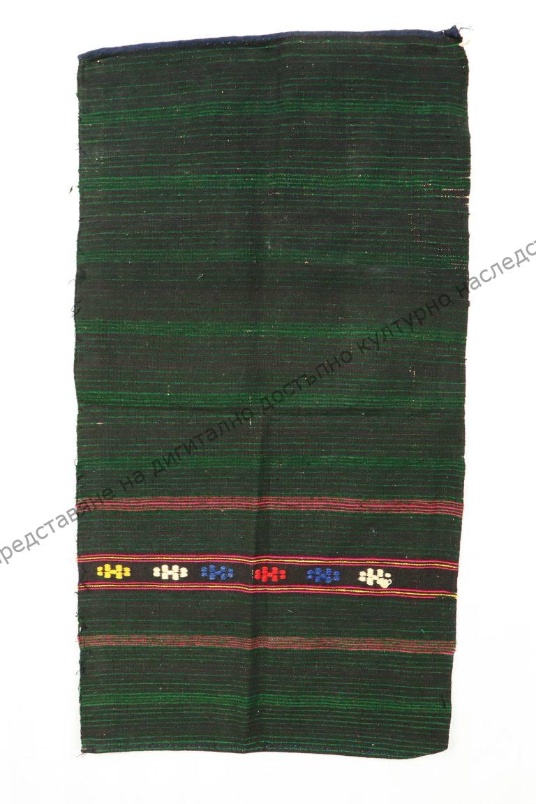 От вълна и памук. Домашно тъкана лито на разноцветни ивици, между тях в долния край бродирани геометрични орнаменти