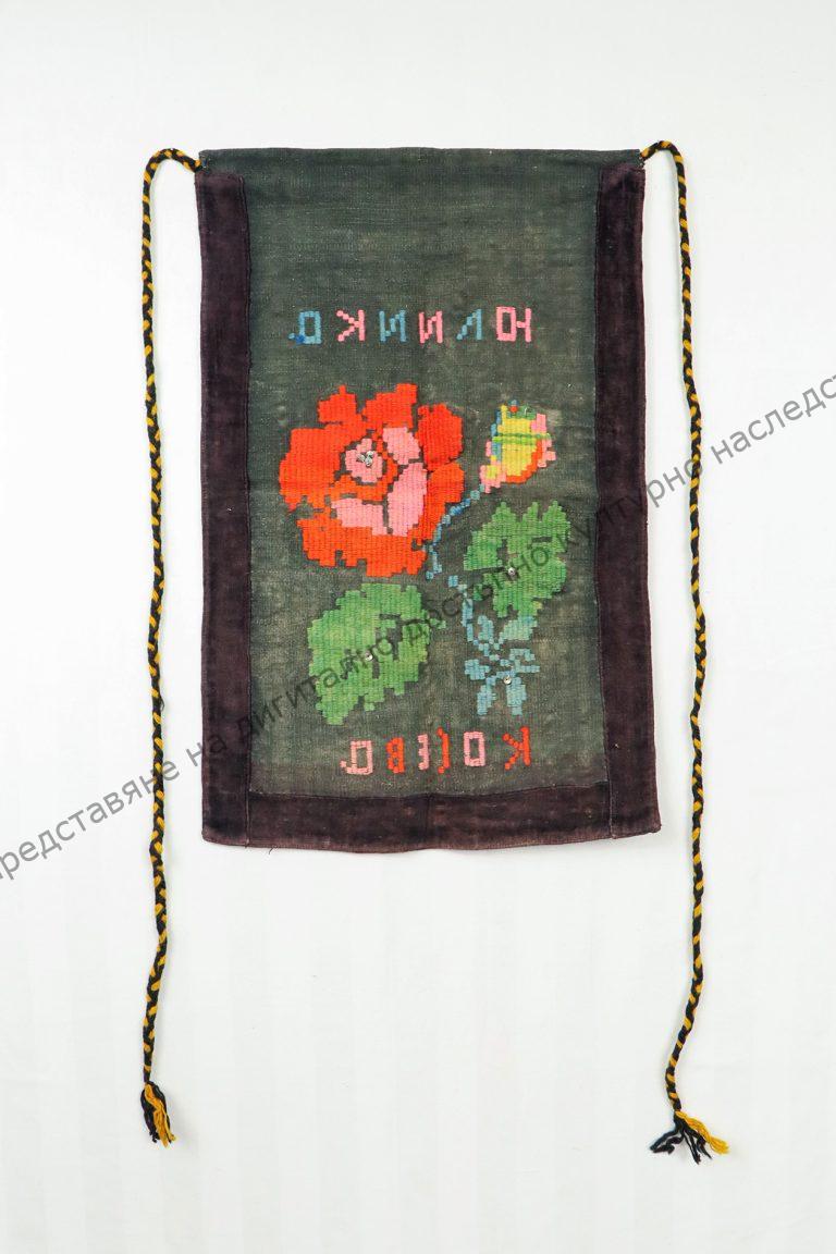 От памук. Домашно тъкана. Лицевата страна бродирана с растителни орнаменти, с изписано детско име, 10-те години на XX век