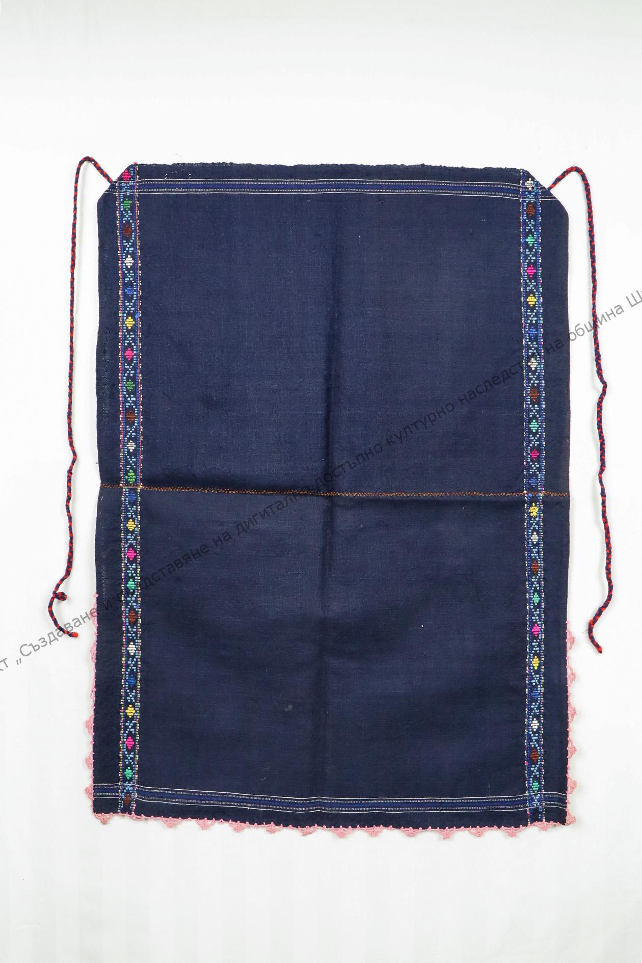 От вълна. Домашно тъкана лито, тип „поленска“. В двата края бродерия от геометрични орнаменти, разположени в бордюр, 30-те години на XX век
