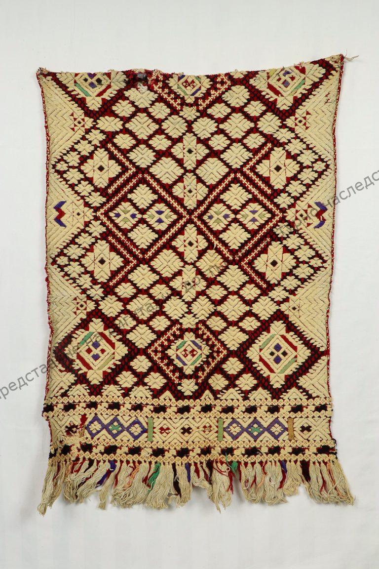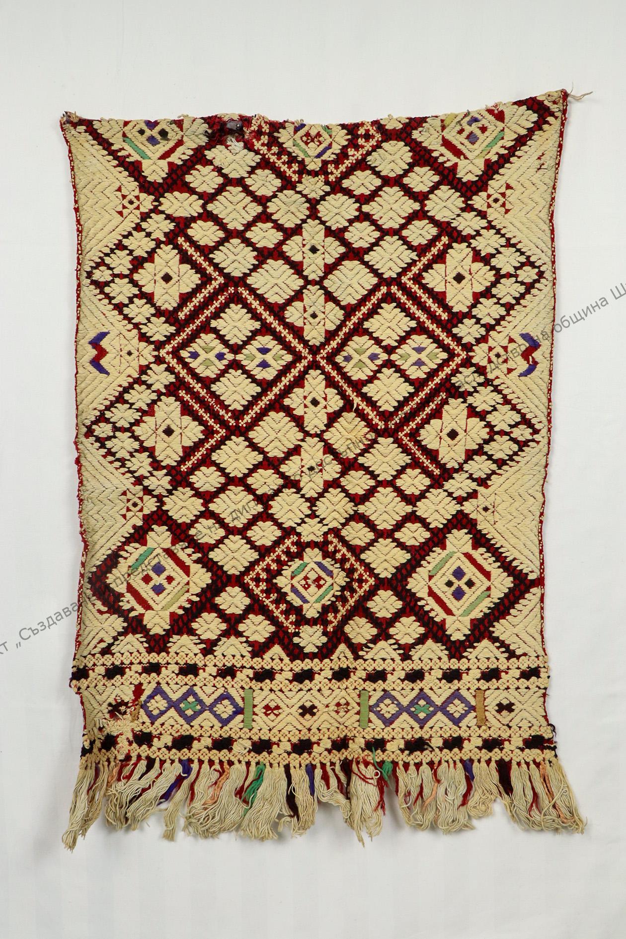 Тип „добруджанска“. От вълна, домашно тъкана. Украса от тъкани с разноцветни конци геометрични орнаменти