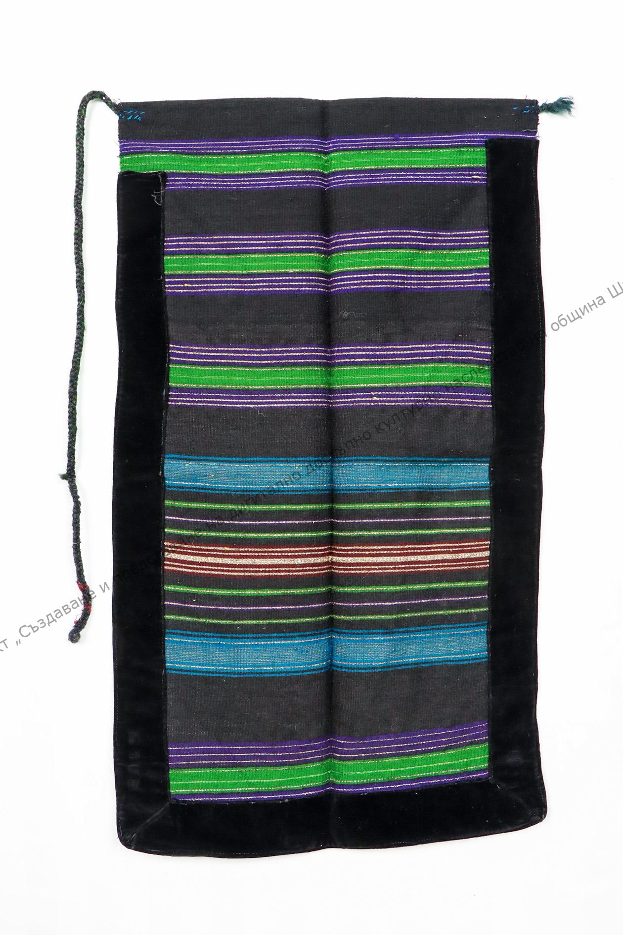 От вълна. Домашно тъкана лито на разноцветни ивици, на места втъкани сърмени нишки, 40-те години на XX век