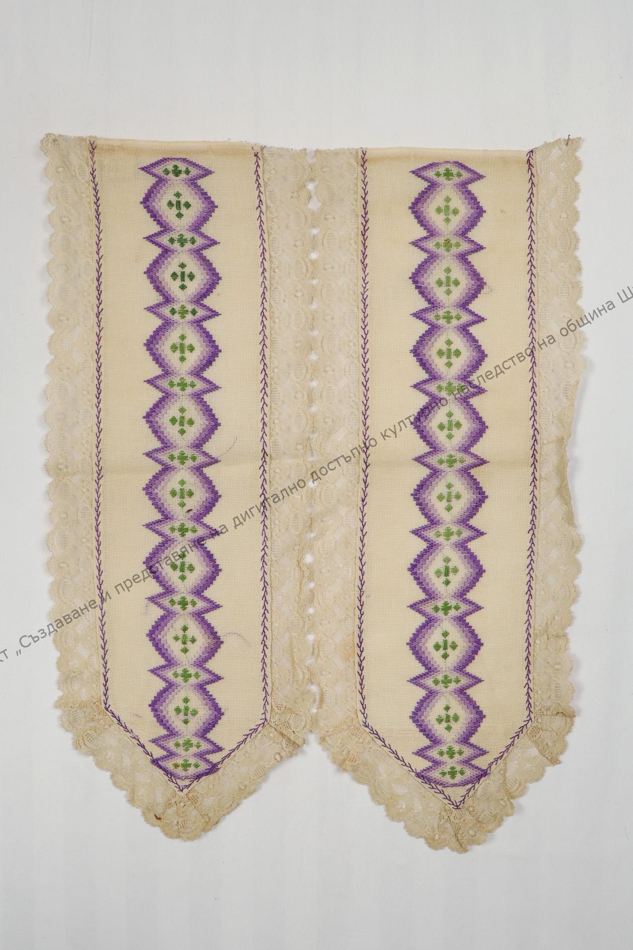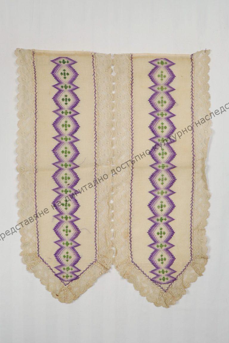 Градска. От рядък етаминен плат. С украса от дантелка и бродирани ромбовидни фигурки, началото на XX век за чеиз