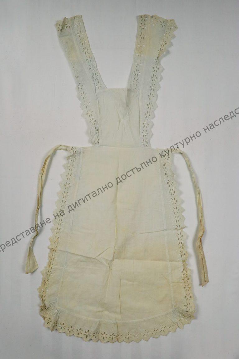 Детска. От фабричен памучен плат. С украса от машинна ажурна бродерия и фестони, началото на XX век