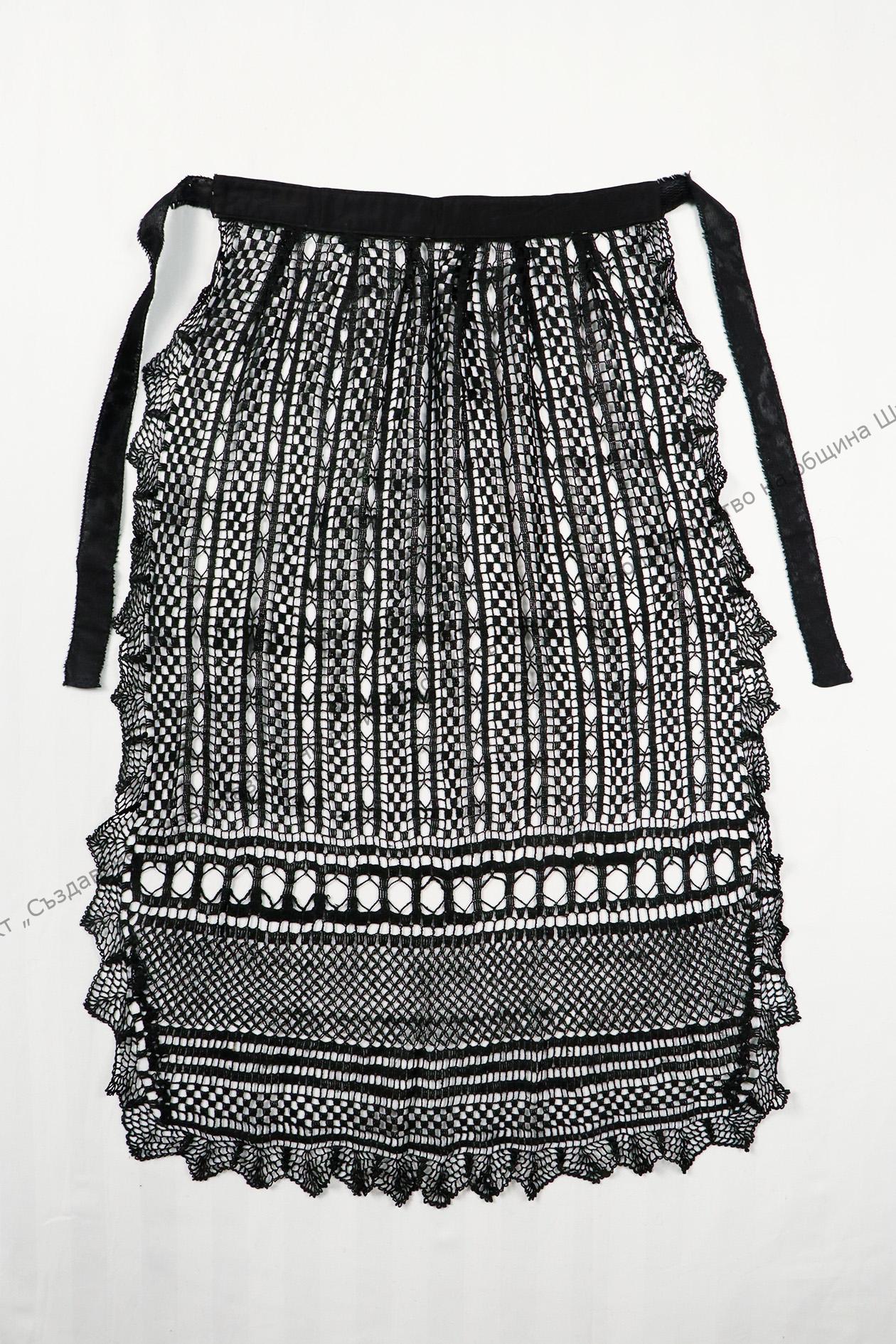 Градска. Плетена на една кука от предена домашна коприна. С украса от наплетена дантела