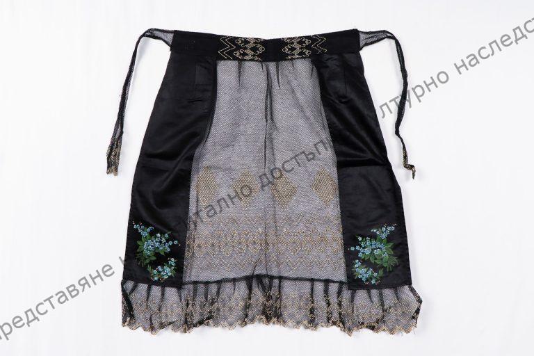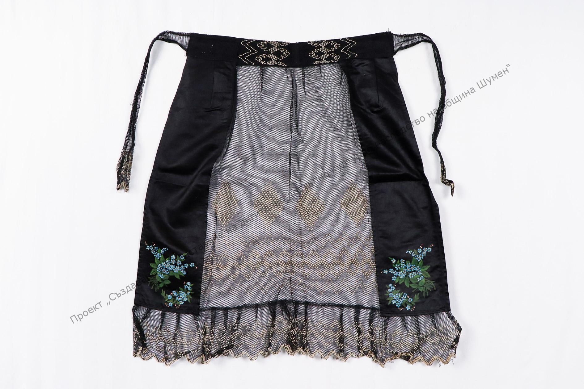 Градска. От плат и дантела. С рисувана украса от растителни орнаменти и пришити геометрични фигури