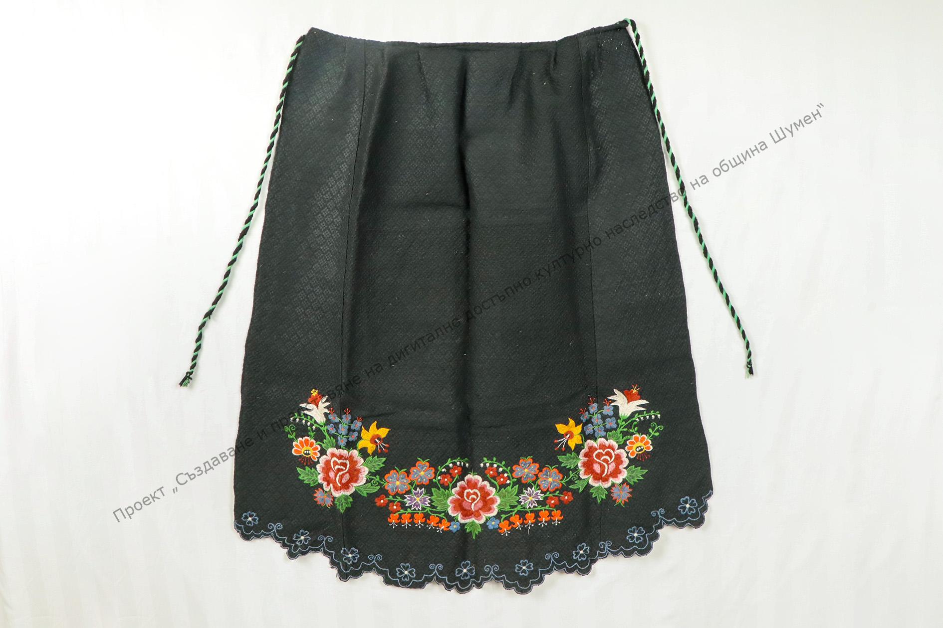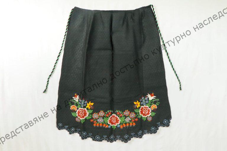 Тъкана мармородно. Украсена с избродирани на машина с разноцветни конци растителни орнаменти. Тъкана около 80-90 години на XIX век за чеиз