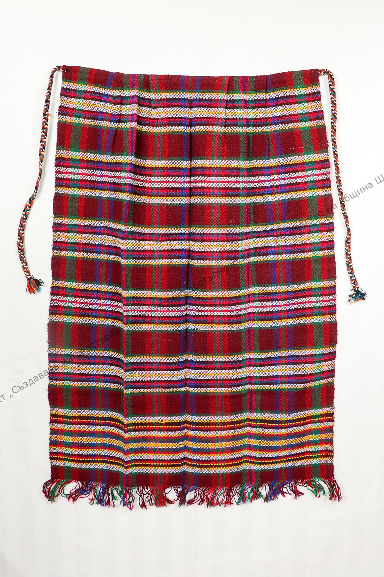 Домашно тъкана мармородно, тип „котленска“. Тъкана на разноцветни ивици