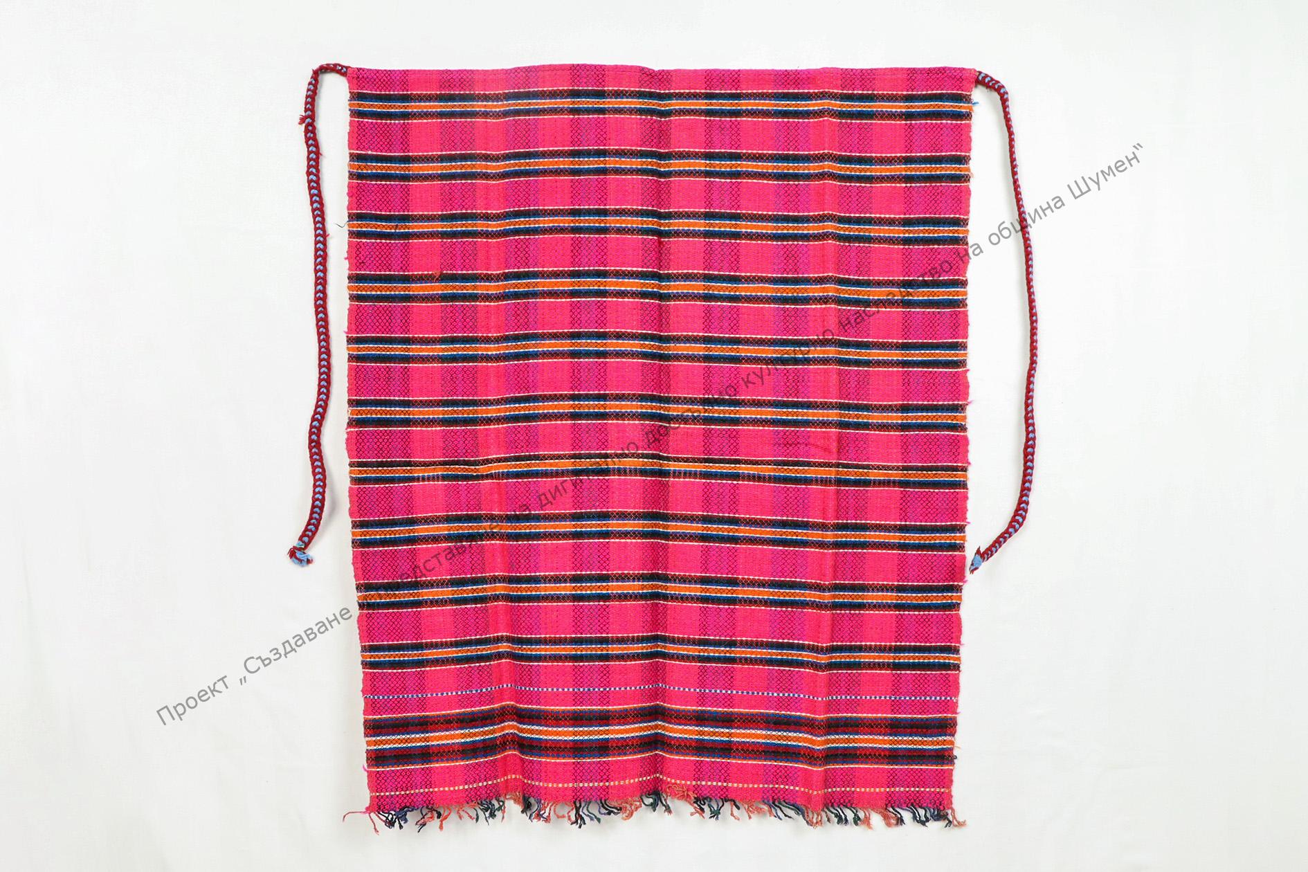 Домашно тъкана мармородно, тип „котленска“. Тъкана на разноцветни ивици