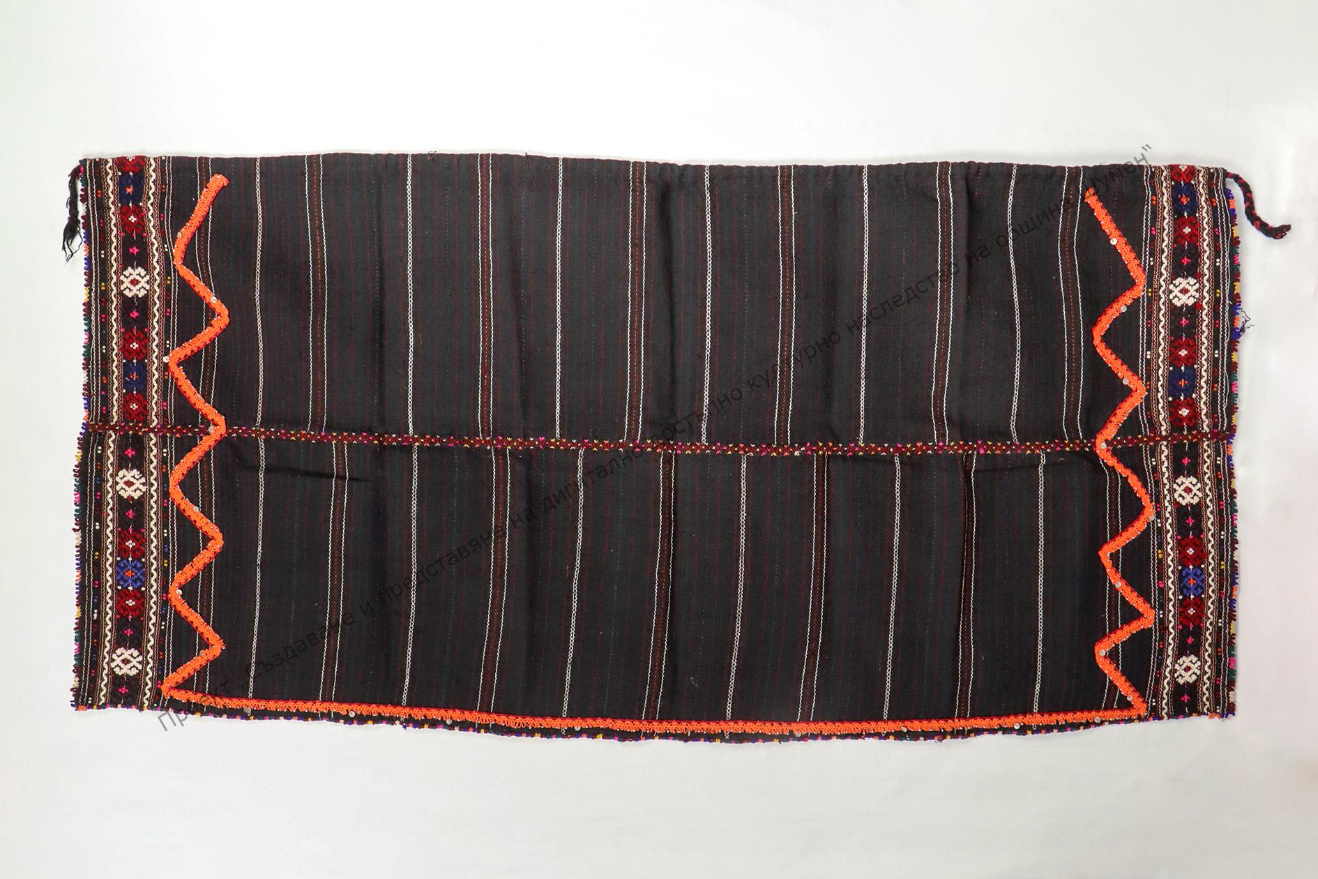 Домашно тъкана, мармородно. Тъкана на разноцветни ивици, по края късани фигури от цветни конци, края на XIX век