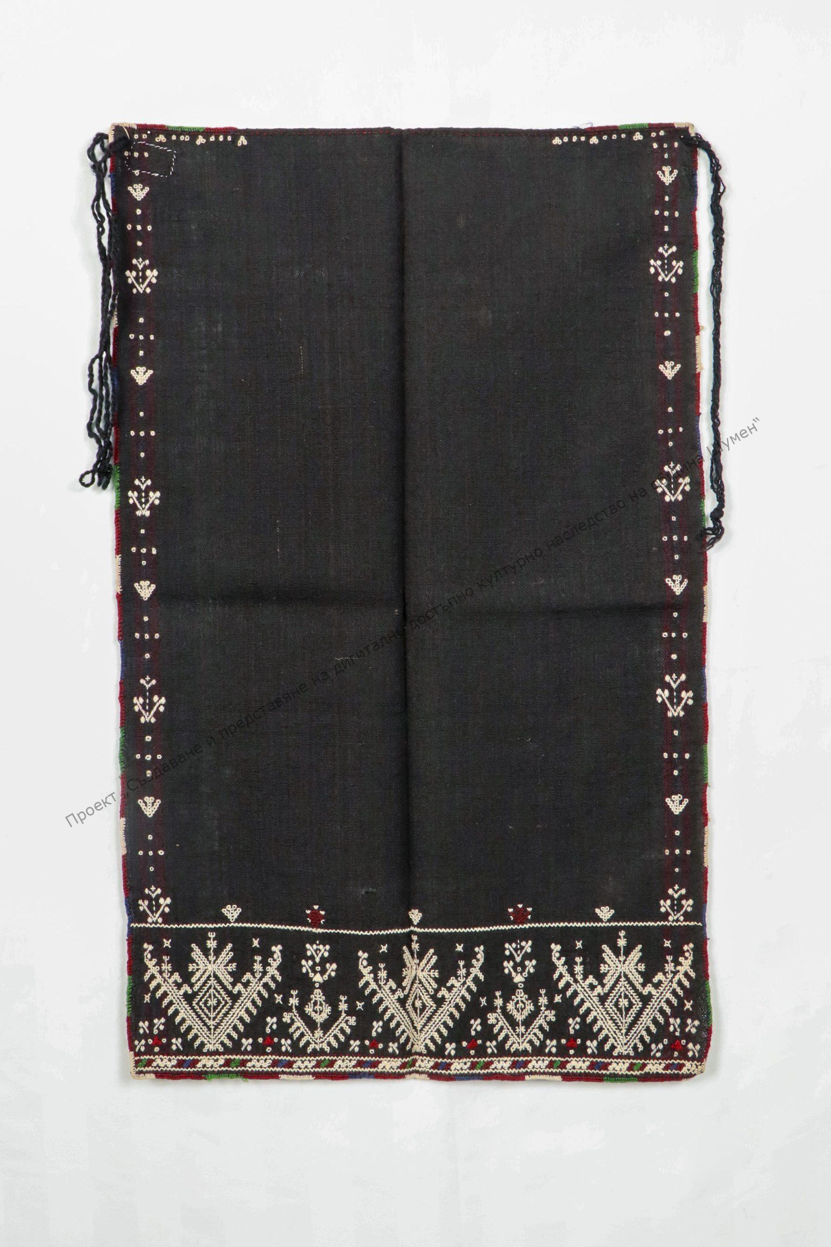 Домашно тъкана, лито. Украсена с бродирани с памучни конци геометрични орнаменти