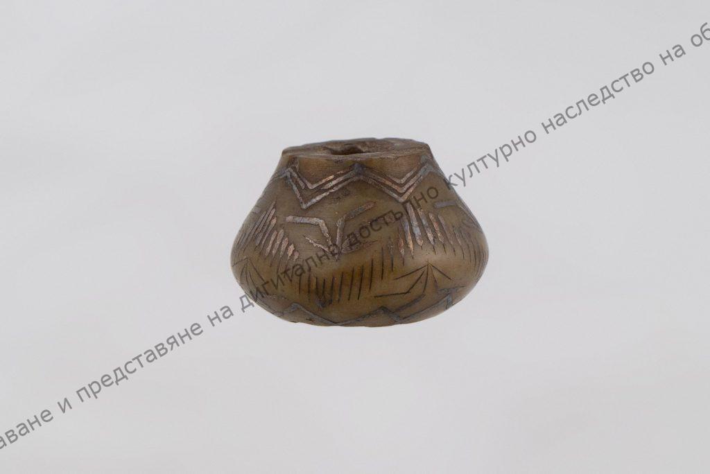 Средната част на мундщук на цигаре. Крушовидна форма, млечно-жълто-зелен цвят, флинт (кремък) с твърдост 7 по таблицата на Моос.