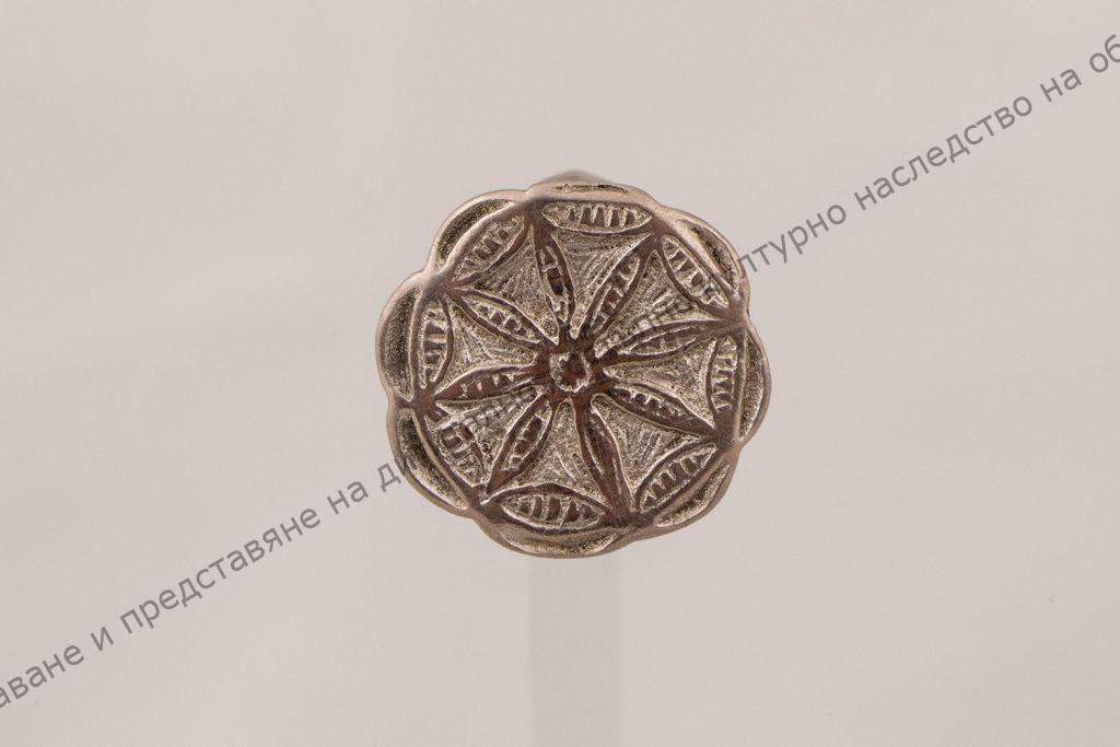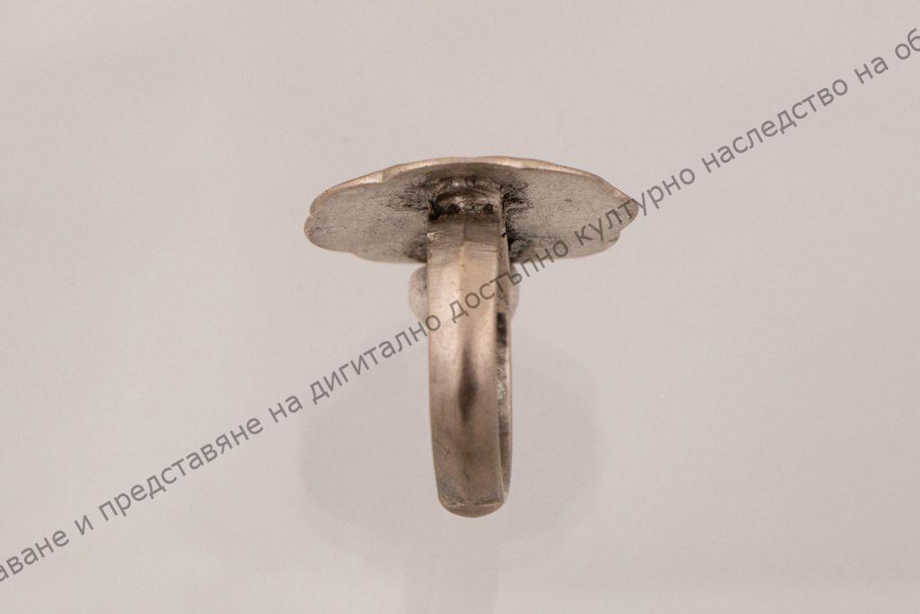 Пръстенът е изработен от медна сплав. Има метална пластинка с триъгълно сечение, отдолу с ромбовиден израстък. Към него е припоена плоска тънка метална плочка с фестонирана форма. Орнаментирана с изпъкнала осем-листна розетка.