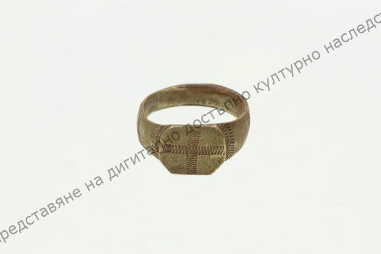 От бронз, лят. Украса от врязани линии във формата на кръст. Началото на XX век