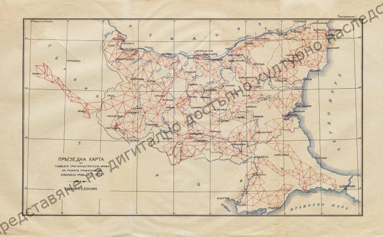 Начало » ПРѢГЛЕДНА КАРТА на главната тригонометрическа мрежа на руската триангулация, извършена през 1877-79 г.