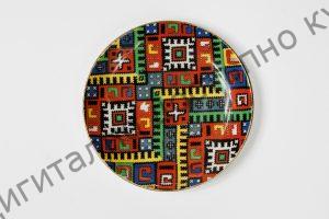 Oт порцелан. Представлява леко издут цилиндър, горе с малък ръб с жлеб за задържане на капачето, леко издуто отгоре, в средата с кръгъл отвор с диам. 3,5 см. Боядисано в портокалово жълто, 3 полуокръжности и кръгчета в черно, изпълнени със синьо пространства. В отвора се впъхва скулптура на фигурка на балерина, широката фуста на която е от фини перушинки за нанасчяе с тях пудрата по лицето. Пудриерата се поставя в малка чинийка, украсена със сложна плетеница от килимени геометрични мотиви и бяло, червено, зелено, жълто, синьо и черно. Много добре запазена. Съдът отвън оцветен в цикламено с черни линии по височината. Принадлежала на семейството на Токалиев – богат шуменски търговец