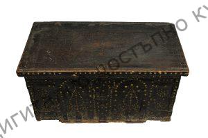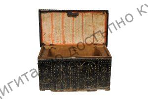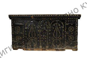 До отвора има малки преградки с капаци за съхраняване на дребни предмети и ценности. С метална обковка и декоративни гвоздеи, образуващи различни форми.