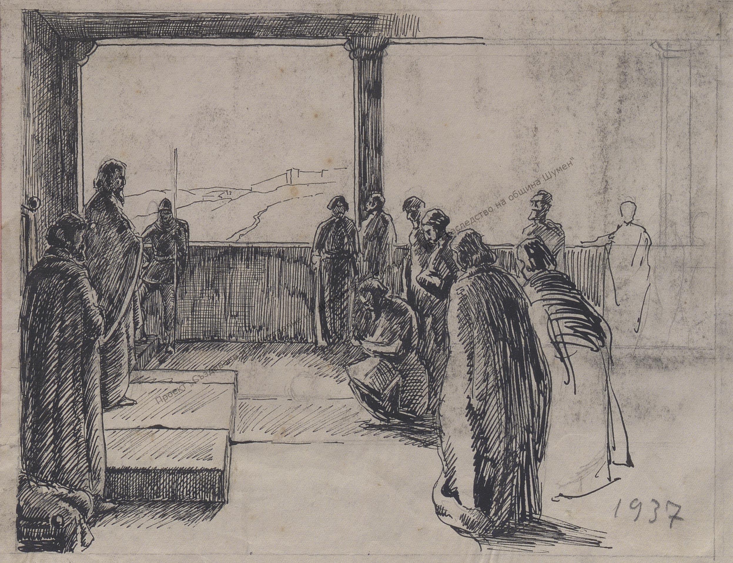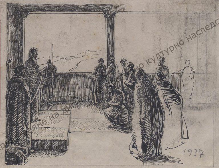 Автор: Владимир Вичев. Техника: молив, туш и мастило. 1937 г.