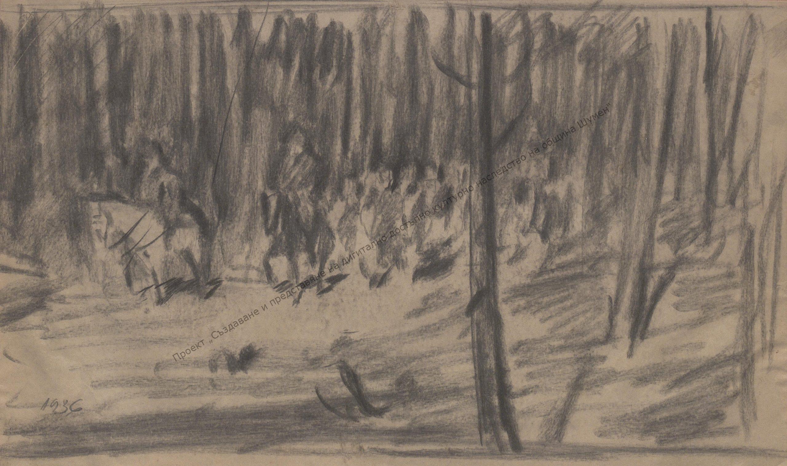 Автор: Владимир Вичев. Техника: молив, туш и мастило. 1936 г.