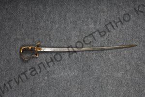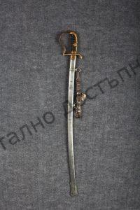 Guards officers, model from 1909. Made in Solingen. The blade is of forged steel with rounded edge and curved backwards point – “feather” type. The scabbard is of soft steel, with widened tip protector.
