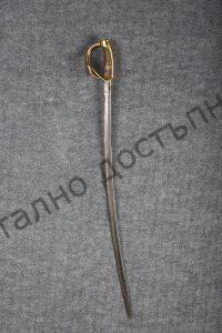 The blade is of forged steel with curved backwards point and one wide fuller on each side. The guard is of bronze, and the hilt is of wood, covered with leather and wrapped in twisted bronze wire. The scabbard is of sheet steel, with a suspension ring and a loop.