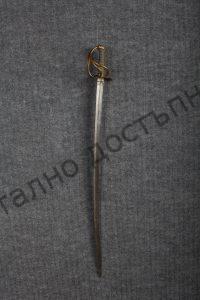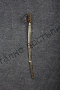 Probably Ottoman Empire – there is a crescent on the scabbard. The blade is of forged steel with curved backwards point and one wide fuller on each side. The guard is made of bronze, and the hilt – of wood, covered with leather and wrapped in twisted bronze wire. The scabbar is of sheet steel, with two suspension rings and loops made of bronze. The tip protector is round. It belonged to Angel Ganev Koydzhiev – volunteer from Shumen.