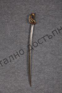 French, cavalry. The guard is of bronze, and the hilt – of wood, covered with leather, twisted with bronze wire. Steel blade, curved, single-edged, with a fuller on each side. The scabbard is of sheet steel.