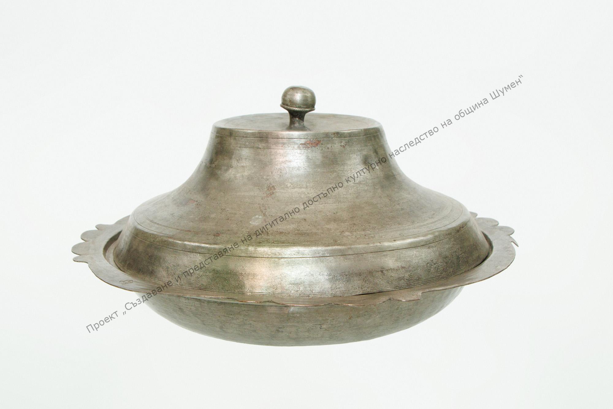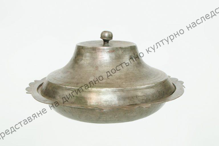 Copper, tinned, wavy brim. With lid, on one side – stamp in a flower petal