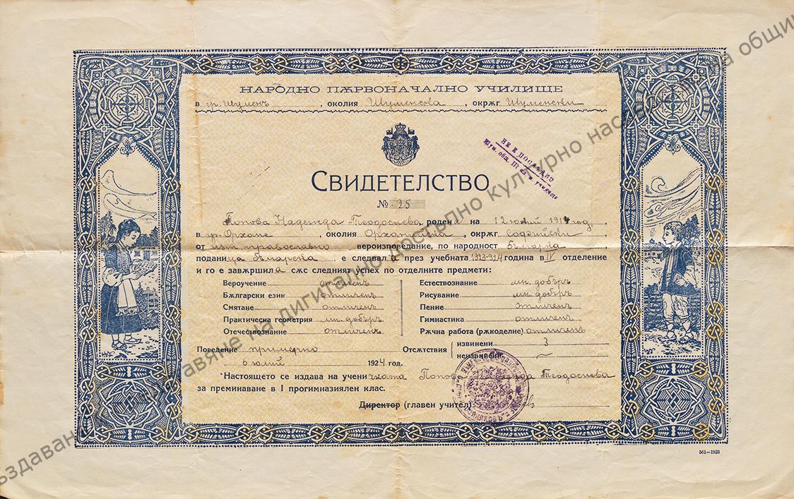 For completing first junior high school class. Nadezhda Popova’s, 1924