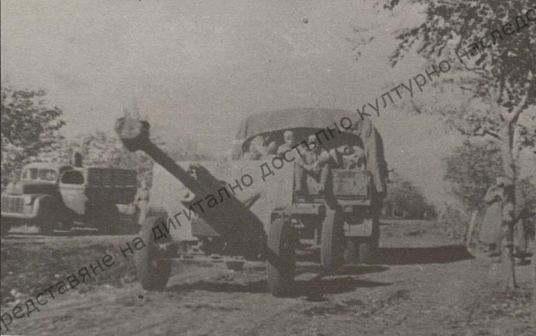 Танкова батарея при 96-та танкова бригада извършва марш-поход по линията Шумен – София – Вирбниц, 15. VIII. 1944 г.