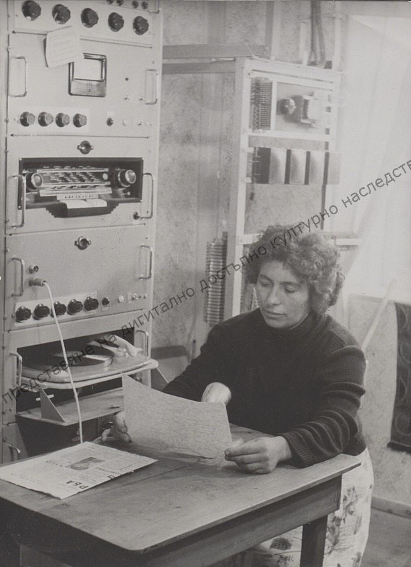 Радиоуредбата в с. Иваново. Пред микрофона – Христинка Андонова, 1965 г.